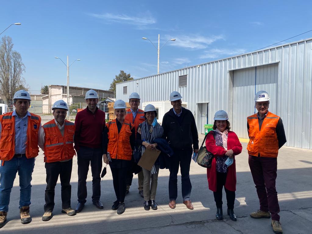 La visita a la planta de EFE estuvo compuesta por Alberto Covarrubias, director ejecutivo y gerente general de Conosur; Daniela Carrasco, vicepresidente de Negocios Corporativos; y Nicolás Ruedi, gerente de placement.
